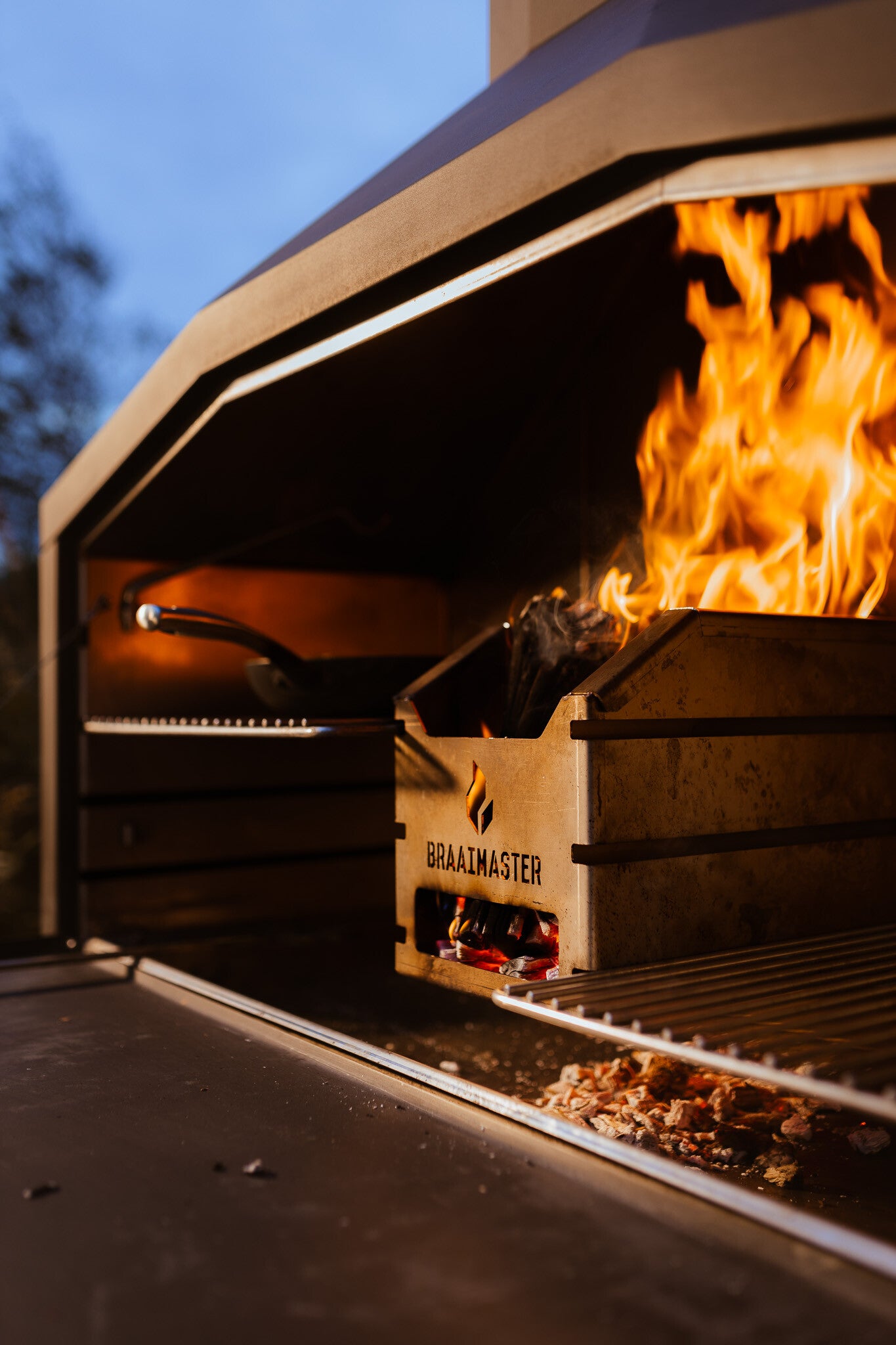 Le Braai est synonyme pour un barbecue à bois avec des belles flammes, un barbecue qui dégage une vraie chaleur, un barbecue qui "donne" le bruit du feu qui crépite, bien évidemment complété par la bonne odeur de la viande sur le grill, une pizza sur la pierre à pizza ou du poisson sur la plancha.