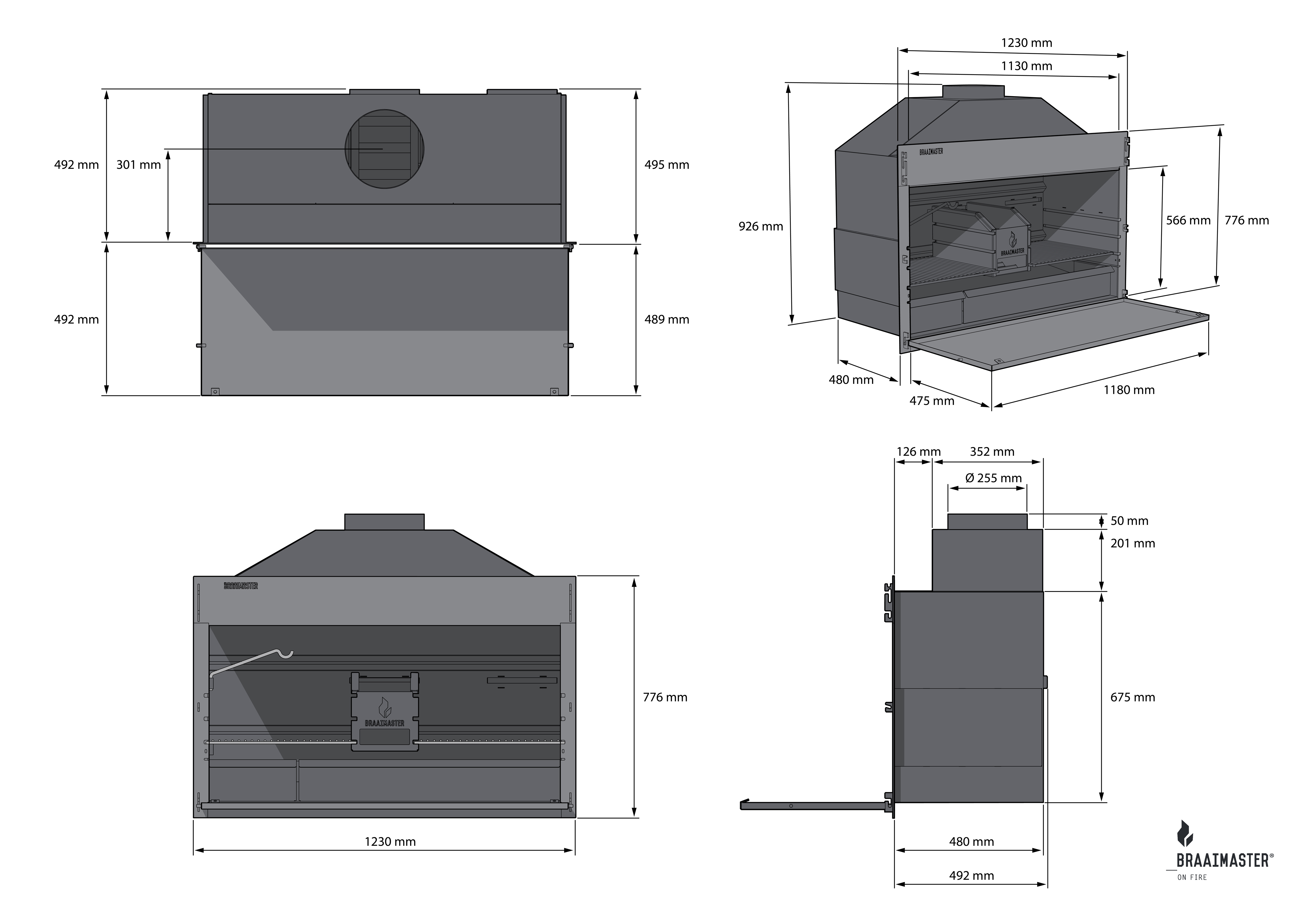 Téléchargez ci-dessous la fiche avec les dimensions du barbecue Braai encastrable BI1200C: