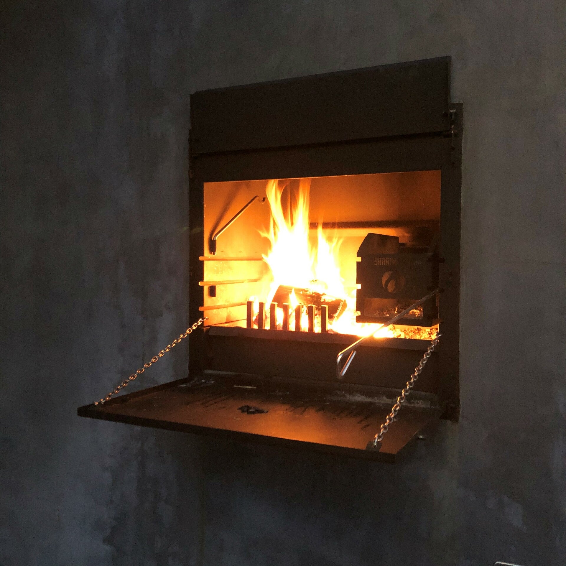 Un élément unique conçu pour faire un feu facilement et obtenir de la braise est accroché dans le Braai. Le feu se trouve toujours dans cette "boîte à feu" et les braises tombent naturellement, au cuisiner de les répartir ensuite selon l’intensité de cuisson voulu. L’avantage est que les aliments cuisent avec des braises sans aucun contact avec les flammes. En principe, le barbecue Braai utilise le bois naturel mais l’utilisation du charbon de bois est possible. Mais, en utilisant du charbon de bois, on n’aura pas cette chaleur agréable et ambiance chaleureuse des effets de flammes.